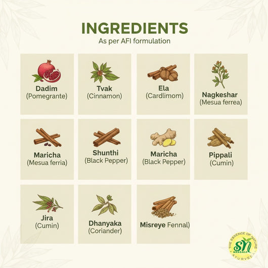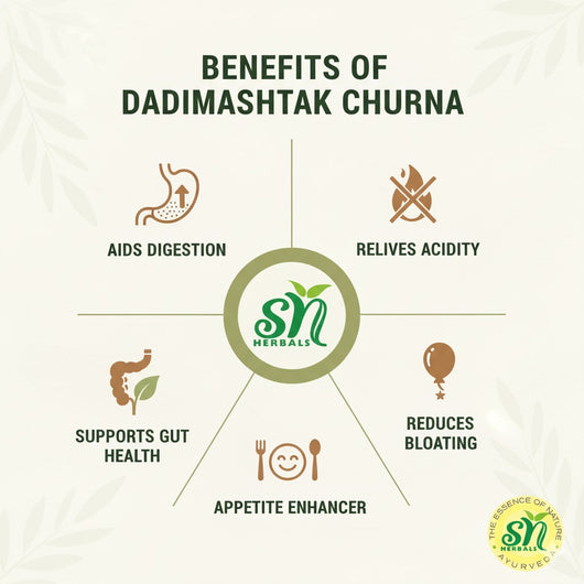 दाडिमस्तक चूर्ण आपके पाचन को नियंत्रित करने में मदद करता है और आराम प्रदान करता है। आंत की जलन और दस्त के इलाज में इसकी असाधारण प्रभावशीलता के कारण पाचन उपचार की तलाश करने वाले किसी भी व्यक्ति के लिए यह एक शानदार विकल्प है।