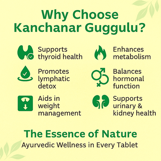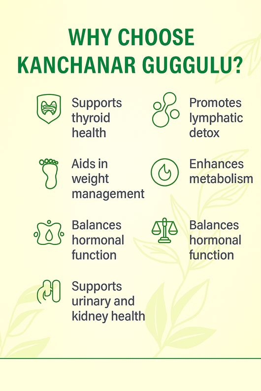 कंचनार गुग्गुलु एक आयुर्वेदिक औषधि है जो सभी आयु वर्ग के लोगों के लिए फायदेमंद है। यह पीसीओएस के लक्षणों को कम करता है और वजन प्रबंधन में सहायता करता है।