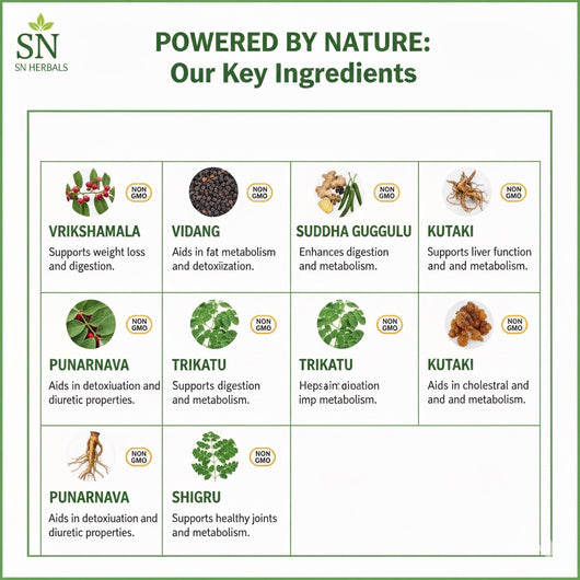 यह शरीर को डिटॉक्सीफाई करने और प्रदूषकों को हटाने में भी मदद करता है। वजन नियंत्रण और वसा चयापचय को बढ़ाने के लिए एक कुशल उपचार, यह गोली पेट की अग्नि को बढ़ाती है, चयापचय को बढ़ावा देती है, और भोजन के स्वस्थ पाचन को भी बढ़ावा देती है।