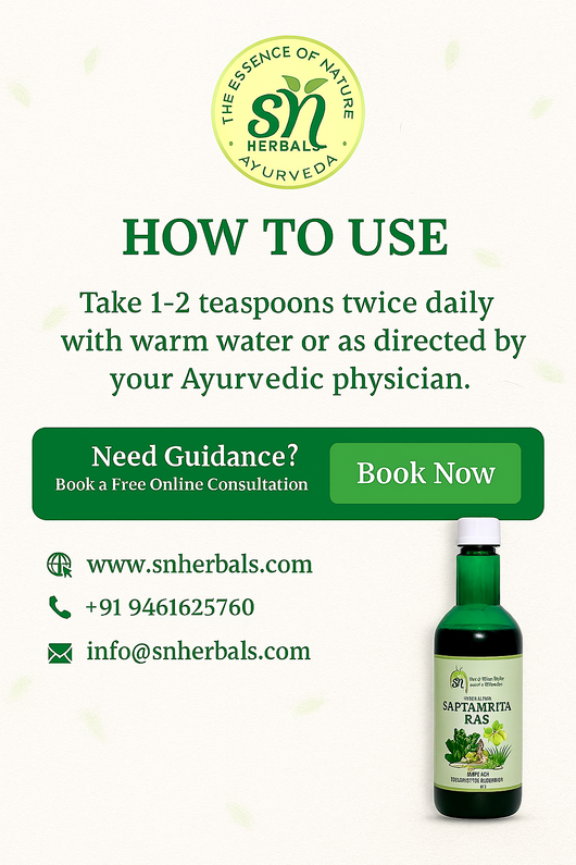 सप्तामृत रस विभिन्न जड़ी-बूटियों से बनी एक आयुर्वेदिक औषधि है जो सभी आयु वर्ग के रोगियों के लिए फायदेमंद है।