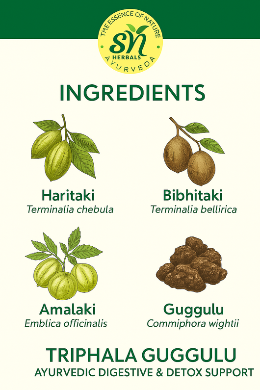 त्रिफला गुग्गुलु पेट के कीड़ों को बाहर निकालने में मदद करता है और वजन प्रबंधन में सहायता करता है। यह एक शक्तिशाली पुनर्स्थापनात्मक गोली है जिसका उपयोग गैस, अपच, पेट दर्द और आंतों की समस्याओं के लिए किया जा सकता है।